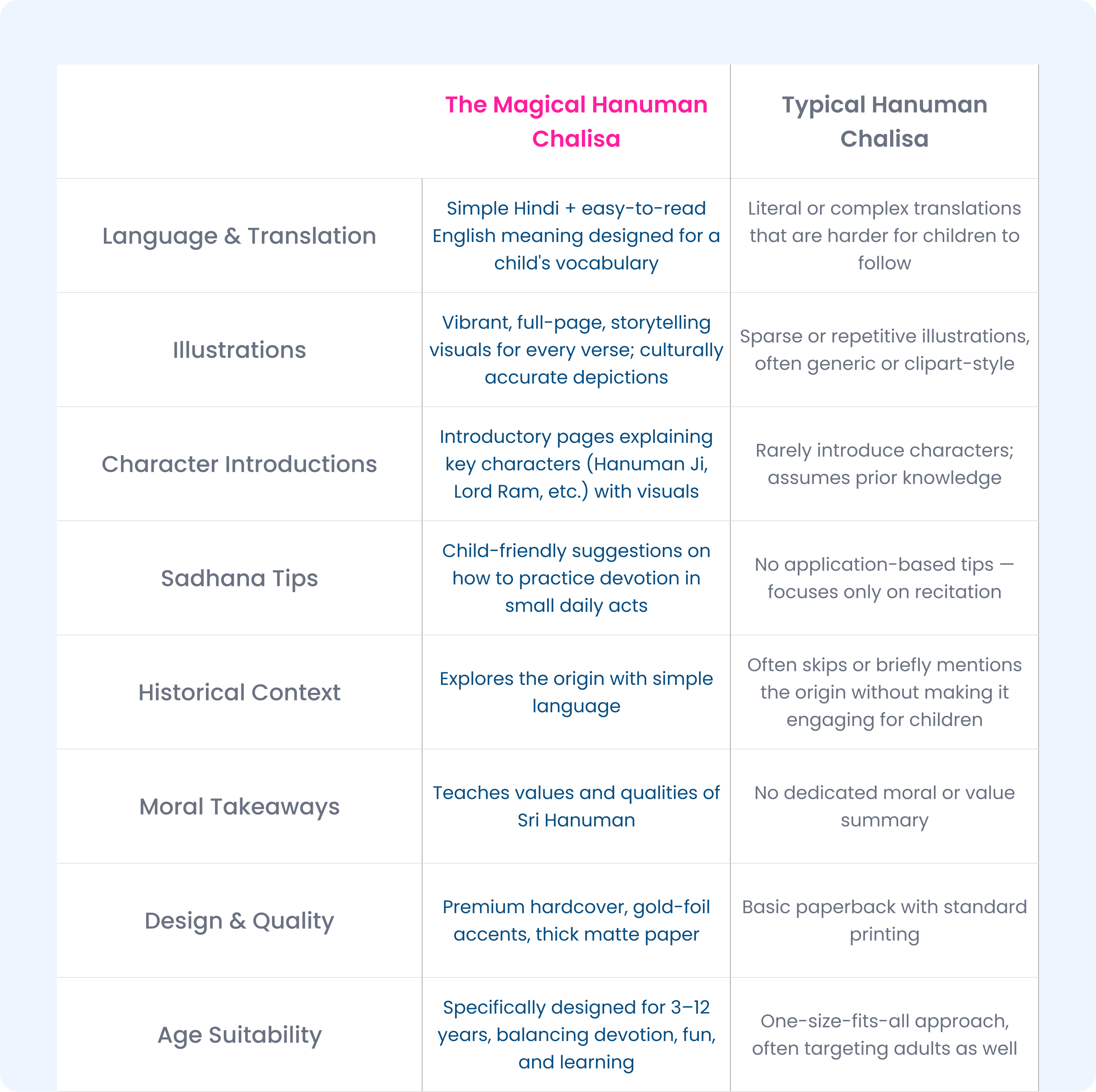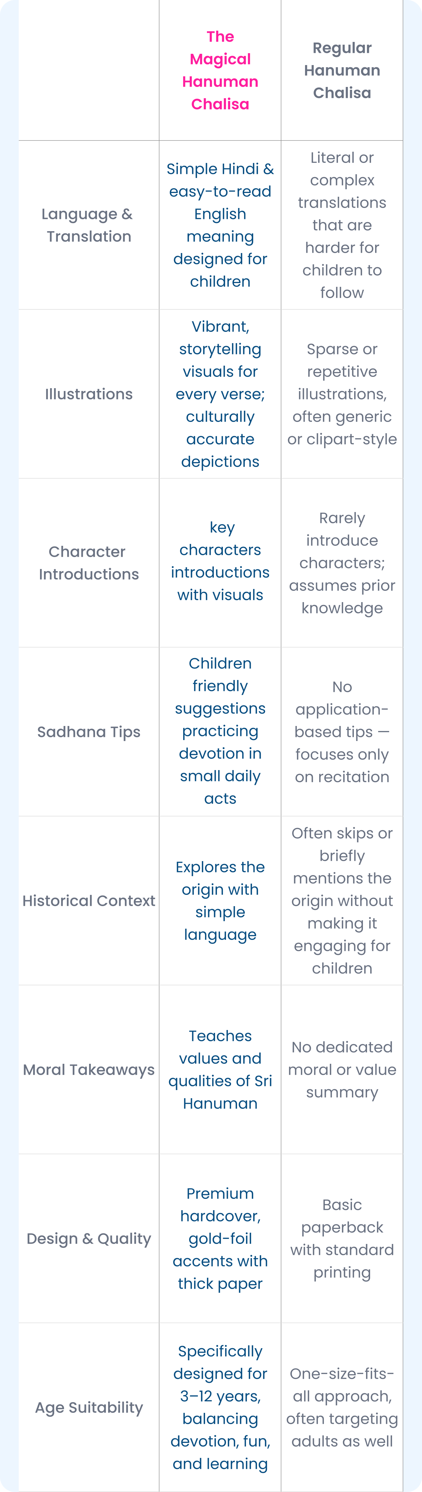 Vibrant artwork on every page makes the Hanuman Chalisa engaging and easy for children to connect with — turning devotion into a joyful, visual experience.
