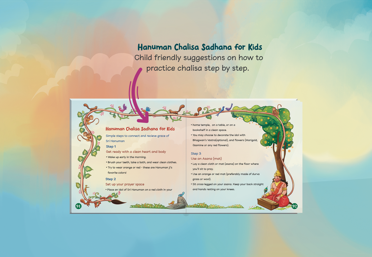 Vibrant artwork on every page makes the Hanuman Chalisa engaging and easy for children to connect with — turning devotion into a joyful, visual experience.